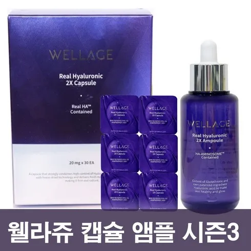 웰라쥬 캡슐 시즌3 리얼 히알루로닉 2X 2박스 (60회분) + 앰플 70ml, 1세트